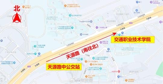 ●天河区天源路南往北方向(天源中路公交站至交通职业技术学院)