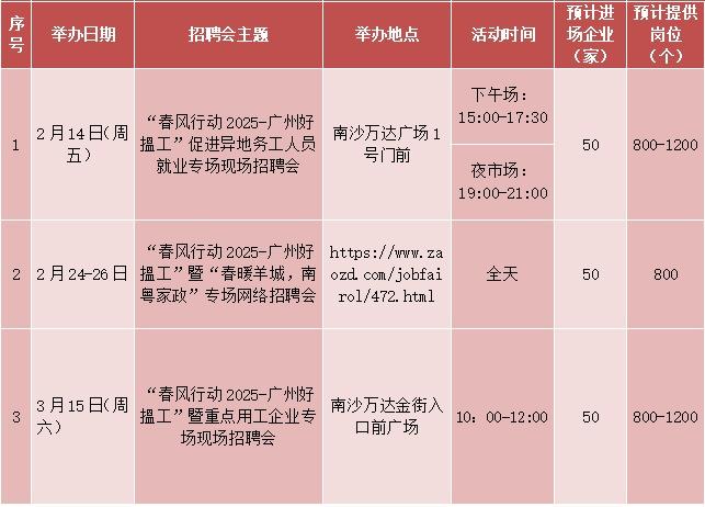 作为开年大戏,南沙街道“春风行动2025”系列招聘会将持续至3月底,线上线下同频共振,为企业和各类求职者提供便捷高效的对接服务。错过首场招聘会的朋友们也不用遗憾,接下来还有两场大型招聘会,具体安排如下,有需要的街坊朋友可多多留意。