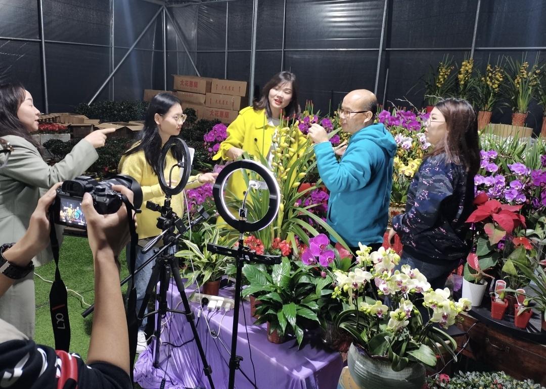 随着电商的蓬勃发展,刘绍平又探索尝试在淘宝、拼多多、抖音等平台开展线上销售,直播卖货。在政府的支持下,他带领村民们上线“云上花市”,短短半个月时间,多个年宵花品种被抢购一空。刘绍平还积极帮助其他花农直播带货,联系物流及线下提货点,服务好每一个会员单位。得益于“云上花市”平台,他首次夺得定价权,并在2020年荣获广东省“12221”农产品销售体系一等奖。
