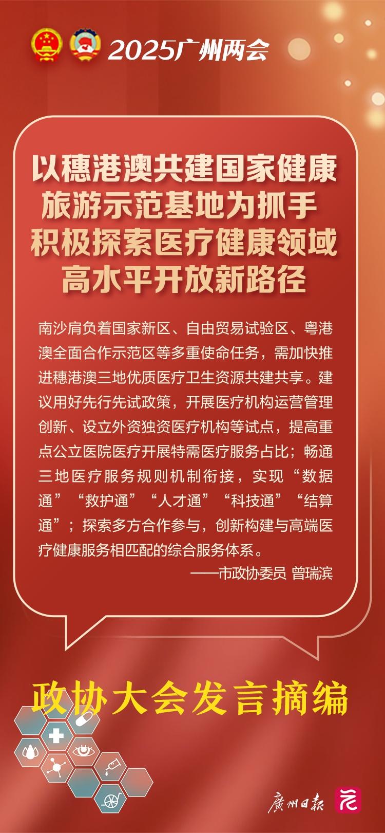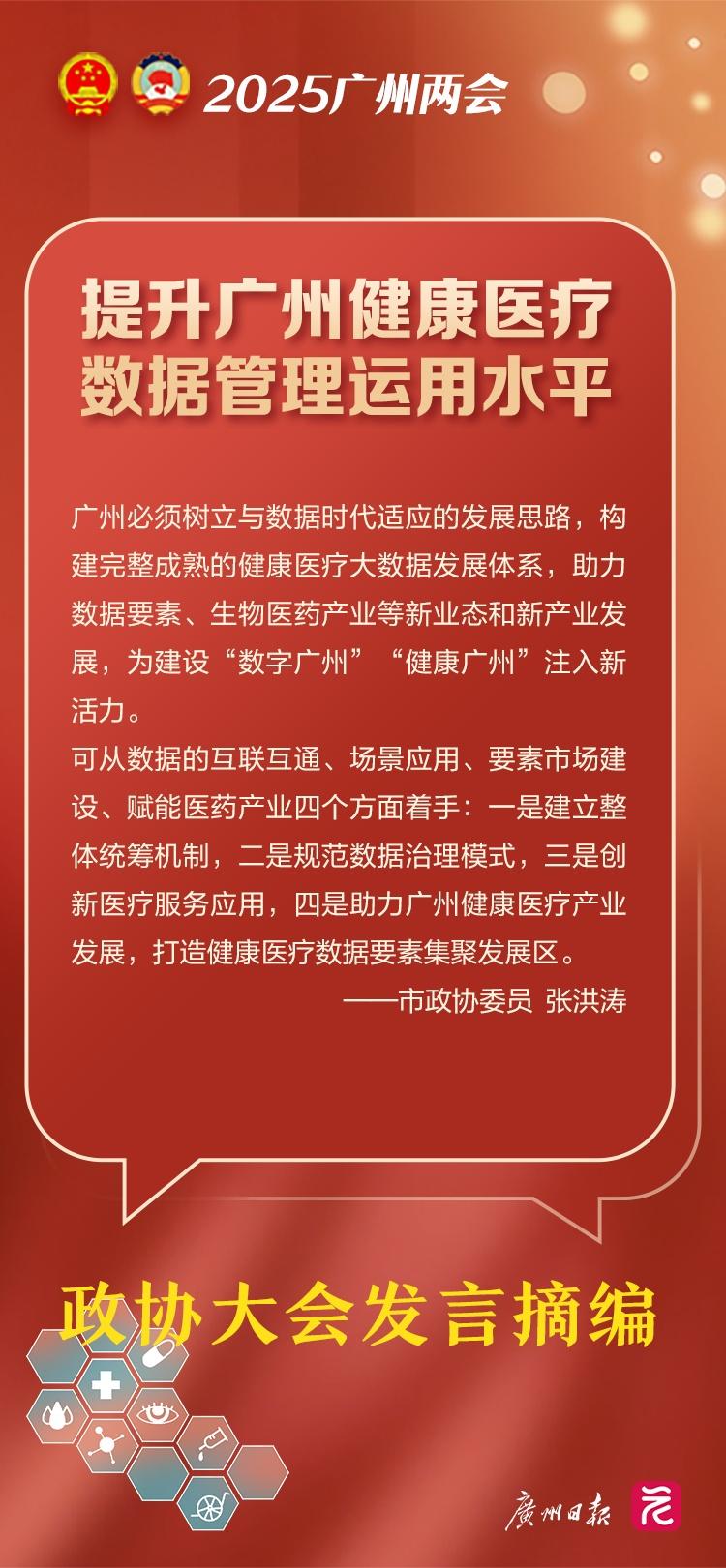 2月19日,政协十四届广州市委会第四次会议举行大会发言。会议安排9名委员分别代表不同单位、界别做口头发言。今年的大会发言与往年相比,更加聚焦于医卫这一民生领域。其中,既有普及高发癌症筛查、试点“无陪护病房”、建立干细胞资源库等针对性建议,也有构建医疗大数据体系、强化人工智能赋能、畅通产业融资渠道乃至优化医院周边交通管理的“跨界类”建议,共同为健康广州建设献策。