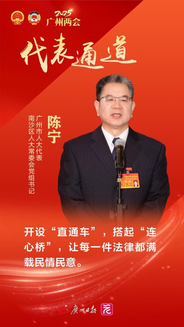 1月20日上午,广州市第十六届人民代表大会第五次会议首场“代表通道”在广州市白云国际会议中心举行。来自不同领域的6位代表结合各自履职实际,聚焦社会热点关切,“面对面”回答记者提问。广州市人大代表、南沙区人大常委会党组书记陈宁表示,设立基层立法联系点是深入推进科学立法民主立法的重要举措和标志性成果。2024年3月15日,南沙基层立法联系点正式挂牌运作,这是全国人大常委会法工委设在广州南沙的国家立法“直通车”,也是党和人民群众之间的“连心桥”。