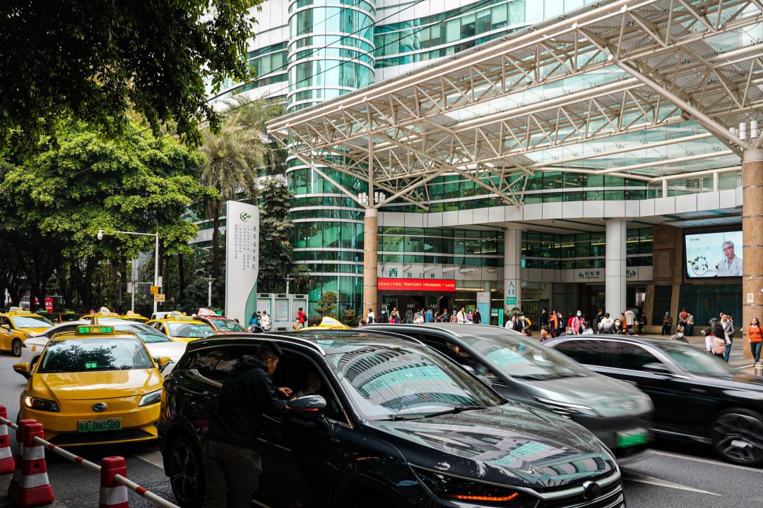 同样位于人民中路的广州市妇女儿童医疗中心(妇婴医院院区)的情况稍好,该医院门口正好是一个公交站点,患者可以公交出行就医,但周边停车场车位、路边泊位均有限,不适宜停车。而在广东省中医院(大德路院区),记者看到医院门口划有大大的禁停区域,但依旧有不少临停车辆挤占空间,导致车流滞缓。临时停车的车辆以出租车、网约车为主,大多是为了接送患者、家属。