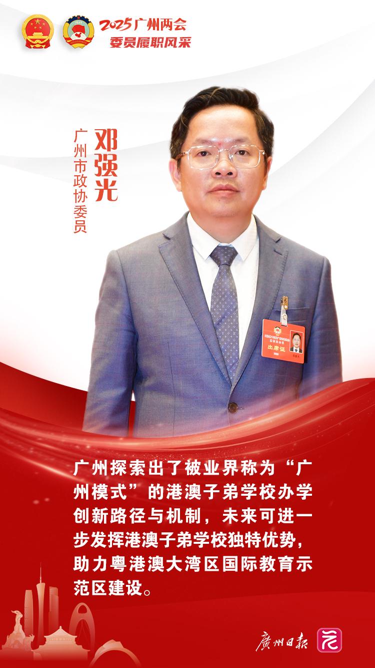 “广州开办了全国首家港澳子弟学校,探索出了被业界称为‘广州模式’的港澳子弟学校办学创新路径与机制。”2月20日,在广州市政协十四届四次会议各界别委员代表座谈会、市领导与港澳地区市政协委员座谈会上,市政协委员、香港维港教育集团董事长邓强光代表市政协港澳台侨外事委发言,建议广州发挥港澳子弟学校独特优势,助力粤港澳大湾区国际教育示范区建设。