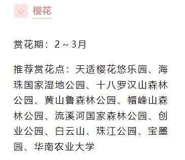 最新版的《花城春季赏花地图》,收录了40多种春日花城的代表花卉和70多处赏花点,方便大家一图快速获取全城各大热门赏花资讯,是爱花悦花、以花为美的人们直观感受花城之春,打卡春日花海的首选赏花指南。