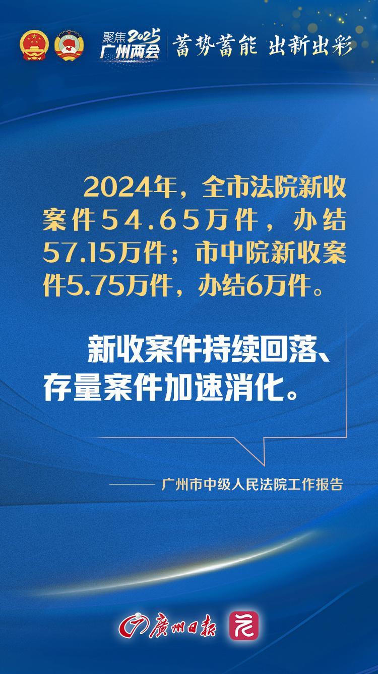 报告称,2024年,全市法院新收案件54.65万件,办结57.15万件;市中院新收案件5.75万件,办结6万件。审判质效8项核心指标全部达标,呈新收案件持续回落、存量案件加速消化、审限内结案率上升、上诉率下降的良好态势,整体工作保持全省全国前列。