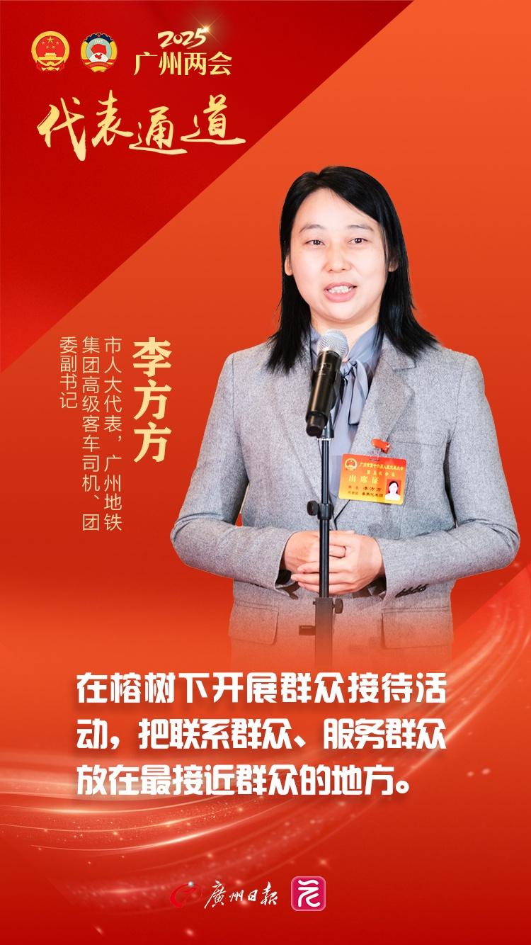 番禺区有个“人大代表榕议亭”。2月22日上午,在广州市十六届人大五次会议第三场“代表通道”上,市人大代表,广州地铁集团高级客车司机、团委副书记李方方,分享了她在大榕树下察民情、汇民智、解民忧的故事。