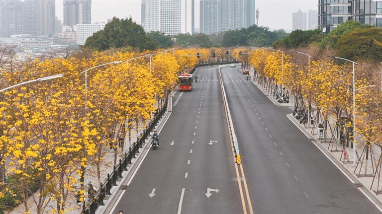 二月,灿烂夺目的黄花风铃木如期盛放,吹响了春日浪漫的号角。据广州公交集团下属巴士集团一分公司介绍,市民游客可乘坐989路线(太古仓总站环线),在海珠涌大桥南站、海珠涌大桥北站、洲头咀公园站下车,沿着环岛路一路前行,欣赏缤纷错落的锦簇花团,一站式尽享美景,在繁华中享受治愈和宁静;还可乘坐188路线【大基头总站(木偶艺术剧院)环线】,在洲头咀公园站下车,既可欣赏延绵不断的黄花风铃木,又可前往洲头咀公园休闲踏青,观赏珠江碧波美景。