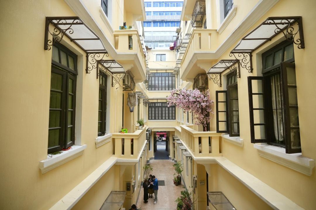 文德楼3号2楼旧居展厅对面就是街坊的家,窗台上既有晾晒的衣服,也有点缀的花草。在这里,红色史迹与人居环境共生。据介绍,在“政府统筹+企业资金+专题博物馆”模式下,文德楼被打造成全市首个在居民区内部运行的红色场所。文德楼的修缮采用“微改造”的方式,最大限度保持原有建筑的历史风貌,同时又使整座楼及周边的人居环境有了改善提升,深受居民好评。