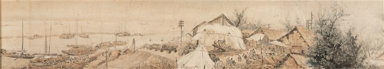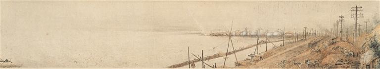 1956年 《武汉防汛图卷》(局部) 黎雄才 30.4×2788cm(全卷) 中国美术馆藏