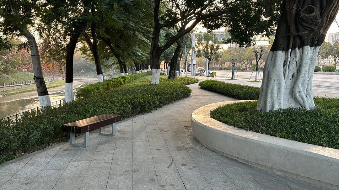 奥体中心精致街区注重城市界面与自然景观的边界衔接,运用通透的绿化与休憩空间设计,释放车陂涌的河涌景观魅力,引导慢行流线与停留空间向水边靠近,实现开放融绿,为市民营造出更加宜人的城市景观体验。