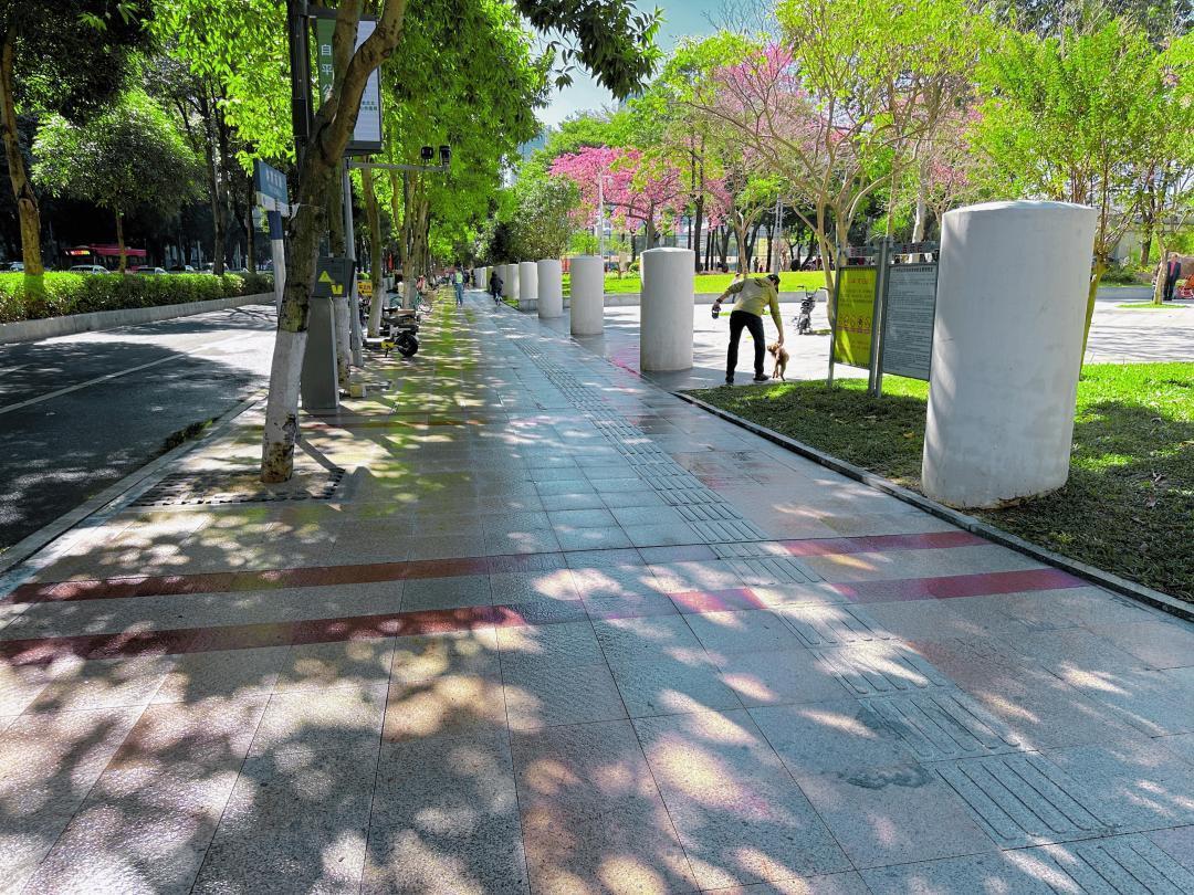 在市执委会的统筹下,以打破权属界线理念为指导,广州市城市规划勘测设计研究院技术指导天河区与市重点项目管理中心,不断优化天河体育中心边界设计,通过增加绿地园路、清杂透绿、后退街角围蔽,占道环卫房与公厕巧妙融入街角绿地,释放人行空间,实现市政人行道、地铁出入口与天河体育中心内部空间的连通,打造城市生活步行便捷绿廊。
