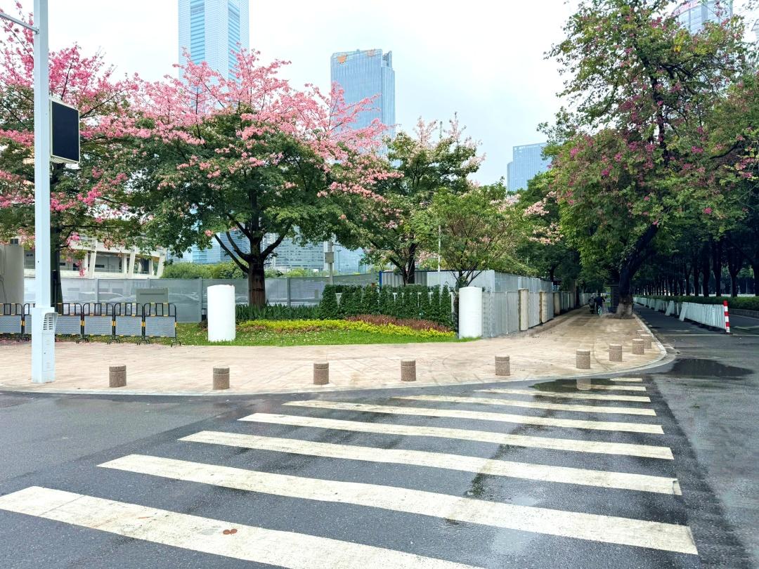 天河体育中心通过多杆合一整治、小型市政设施有序并入路侧设施带、规范非机动车停放区域等精致修补措施,优化慢行空间,保证通行空间顺畅无阻;在街角设计与实施上精雕细琢,减少车辆转弯半径,为每个街角平均增加约200平方米过街等候空间,实现安全有序的过街区域。
