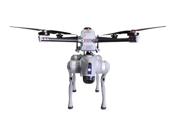 杰创智能还推出了“飞天机器狗”,也叫“杰创哮天犬”,是国内首款深度融合机器狗与无人机的具身智能产品,集陆地行走和空中飞行于一体,能在复杂的天气和地形中稳定作业,执行目标抓捕、搜救灭火等任务。