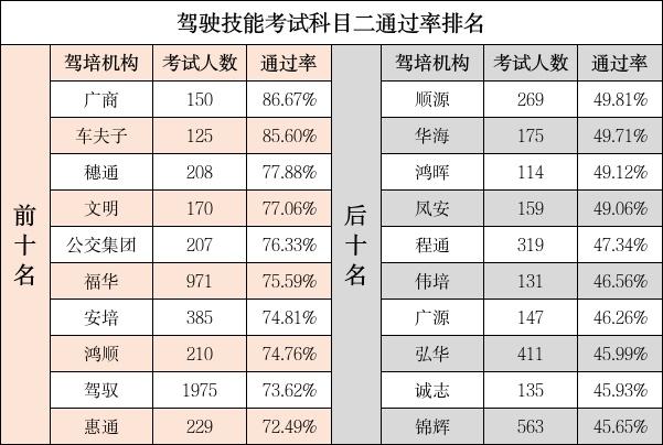 考试通过率方面,2025年1月,广州市场地驾驶技能考试(科目二)通过率最高的机构的通过率为86.67%、通过率最低的机构的通过率为45.65%。道路驾驶技能考试通过率(科目三)通过率最高的机构的通过率为72.87%,通过率最低的机构的通过率为31.06%(前后十名,考试人数小于100人的驾培机构不纳入统计)。