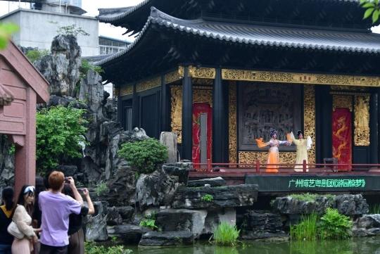 走进粤剧艺术博物馆,水榭楼台之间,粤韵声声。露天的广福台下,总能看到一群人围坐,一边休憩一边欣赏粤剧粤曲表演。