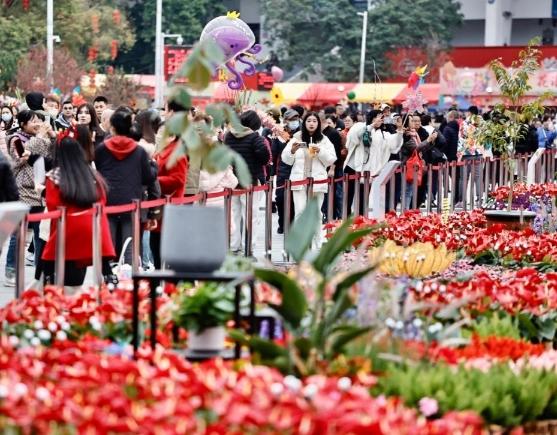 广州北京路举办的蛇年新春广府庙会民俗表演受热捧。