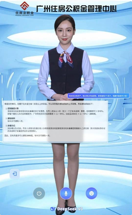 近日,广州住房公积金管理中心正式上线“AI数字人”,率先实现“AI数字人”全面对接DeepSeek大模型,通过线下适老化自助终端向市民开放,为市民提供更加便捷智慧的政务服务,这标志着“智慧公积金”服务迈入“AI深度赋能”时代。