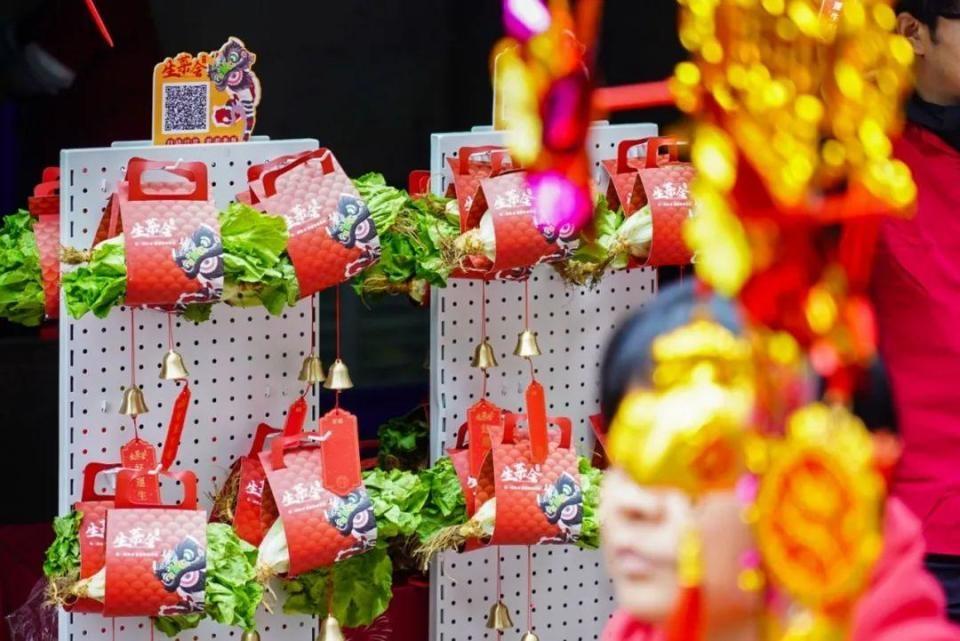 本届生菜会创新推出“生菜文化IP”商业化路径,发布全新LOGO及生菜棉花糖、祈福风铃套装等周边产品,其中生菜棉花糖单日销量近千个,档主日收入破万元。60余家非遗美食与工艺品摊位组成“72小时不夜市集”,夜间经济活力显著提升。通过“许愿墙”及小红书联动征集市民愿望,线上线下传播影响力进一步扩大,传统与创新共振,百年民俗借力文化IP,激活非遗传承的当代价值。