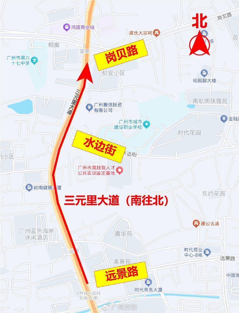 广州交警提醒广大交通参与者,届时请根据道路实际交通标志标线指示通行。