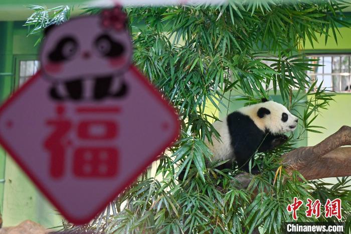“妹猪”是全球唯一大熊猫三胞胎的后代。即将满9个月的“妹猪”当日在新居亮相,先是好奇地打量新居钥匙,当发现餐桌上丰盛的“入伙宴”后,立即跑过来享用大餐,美滋滋的模样乐翻游客。