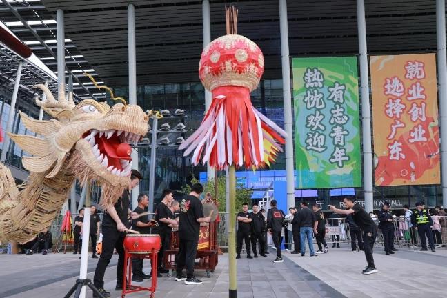 在广州大道的入口,集章打卡处成了同学们求职的“第一站”,也是必来的打卡点。可口的饼干和甜蜜的沙琪玛供大家取用,为大家接下来的求职加满动力,也展现出广州广迎人才的贴心与诚意!