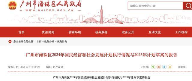 3月14日,海珠区发改局发布了《广州市海珠区2024年国民经济和社会发展计划执行情况与2025年计划草案的报告》(以下简称“《报告》”)。