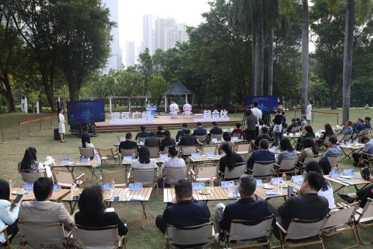 在活动现场,一些设计独特的手提包,在草坪上吸引了许多人的目光。东莞目及文化总经理梅国兰告诉记者,这些手提包是用回收再生材料并通过绿色低碳的方式生产的,该公司计划制作一系列有全运会元素的手提包、徽章以及其他文创产品,成为广州高质量生活方式的“合伙人”。
