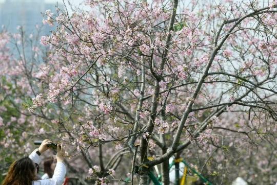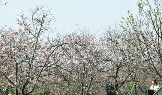 广州海珠湿地深处的10亩樱花林,是春日里不可错过的浪漫坐标。海珠湿地二期的樱花已在三月中旬迎来初花期,三月下旬至四月初,将迎来樱花最美的时刻。樱花林所种品种以上广州樱为主,此外还有花期更早的中国红樱、小乔等品种。樱花树形纤巧,枝丫低垂探向水面,与湿地生态浑然天成。