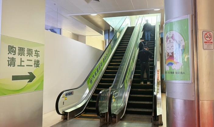 据悉,新启用的地面至二楼售票厅通道配有手扶电梯,旅客从地铁二号线、五号线广州火车站的地下市政通道4到达地面后,乘坐手扶电梯直达二楼售票厅,有效缩短了进站距离。省汽车客运站已在一楼手扶电梯处增设引导标识牌,指引旅客进站,方便旅客进站乘车。