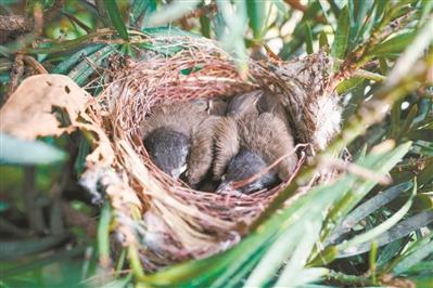 在庞叔看来,且不论鸟儿是否珍稀,难得的是,从上次红耳鹎来他家孵蛋起,五年来一直有各种各样的鸟儿造访他家阳台,同他和家人“亲密接触”,他早已把这些小精灵们当作家人。“我在这里住了20多年,在阳台种了很多年的三角梅和罗汉松。可能是因为15楼弧形阳台飘出去的三角梅枝条为鸟儿们提供了一个很好的落脚点,这五年来,每天天一亮,都有鸟儿在阳台鸣叫。每天,被清脆透亮的‘闹钟’叫醒,已成为我生活中不可或缺的小确幸。”庞叔说,更让他惊喜的是,这是第二次有红耳鹎到他家孵蛋。