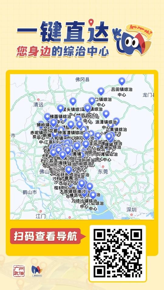 日前,广州市委政法委上线全市11个区级综治中心+177个镇(街)综治中心的精准导航信息,市民动动手指即可实现“一键直达”!