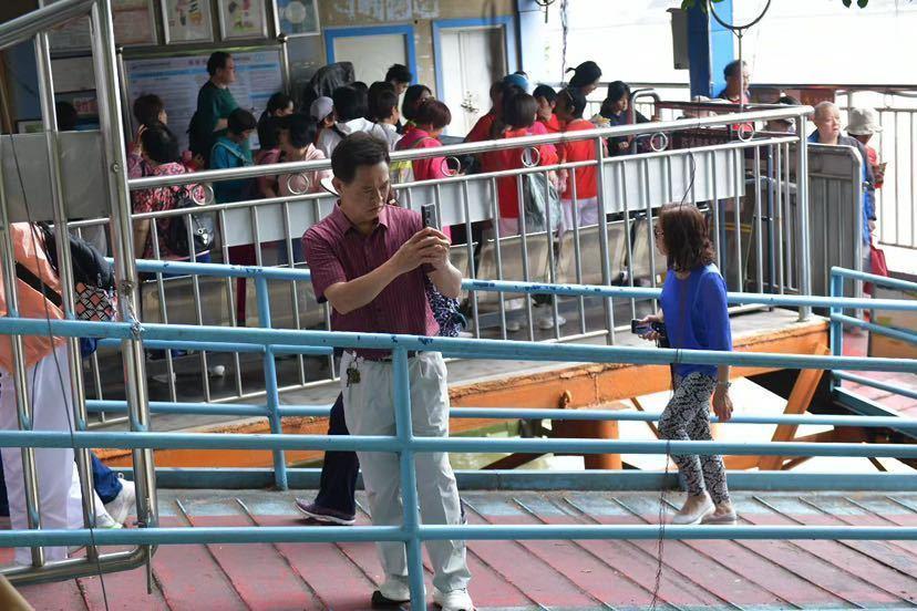 家住新洲码头附近的郑女士和闺蜜们一行五人在新洲码头门前兴奋合影。“我记不清坐过多少次水巴,我这些朋友们都是第一次坐,听说即将停运。她们从海珠、越秀等等,可以说从广州各地赶过来,我们相聚在此,一起坐这条航线,留下一个美好的记忆。”郑女士一边说着,一边按下拍照键为闺蜜们留下珍贵瞬间。