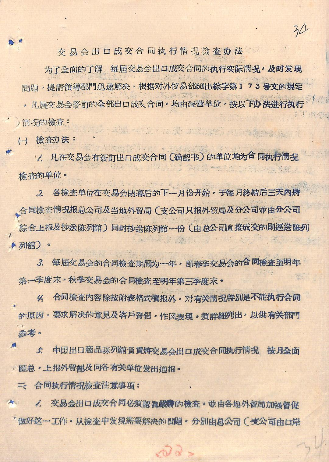 《交易会出口成交合同执行情况检查办法》(1958年)