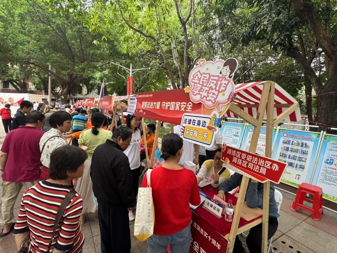 当天,省、市、区党委国安办有关负责同志,海珠区委和各街道相关负责同志,广东财经大学师生代表,市民群众及中小学生代表等500多人参加此次活动。“全民国家安全教育 走深走实十周年”专题展览在广重社区广场同步开展。展览深入宣传总体国家安全观,普及重点领域国家安全及国家安全法律知识,并结合典型案例开展国家安全警示教育。