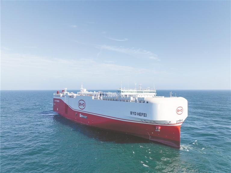 比亚迪7000车双燃料汽车运输船(资料图片) 广州日报全媒体记者骆昌威 通讯员广船国际、赵云鹏 摄