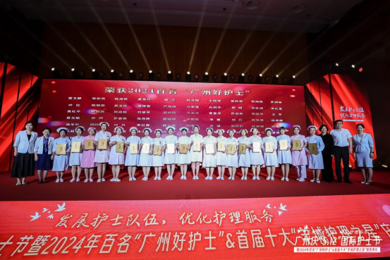 活动现场,100名在爱岗敬业、业务精湛、守正创新等方面表现卓越的优秀护士荣获了2024年“广州好护士”荣誉称号。同时,10位在责任担当、学科发展、服务人民等方面表现出色的护理代表荣获了首届“羊城护理之星”荣誉称号。