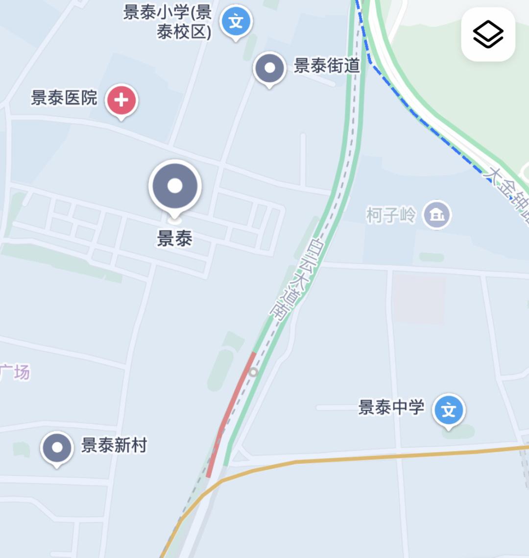 (图中圆点是初定站名为柯子岭的车站,既临近柯子岭,也被多个景泰开头的地名包围。)