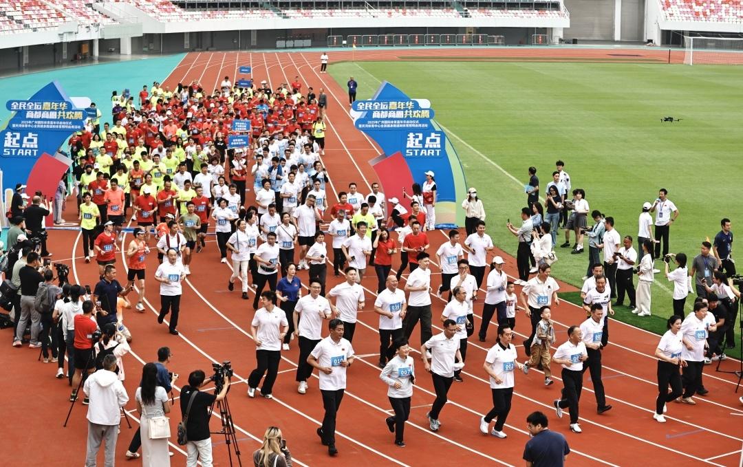 ▲启动仪式结束后,全民健身欢乐跑在场内欢乐举行。