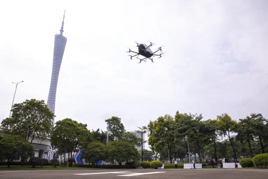 亿航EH216-S从天德广场出发,准备在海心沙降落。(资料图片)