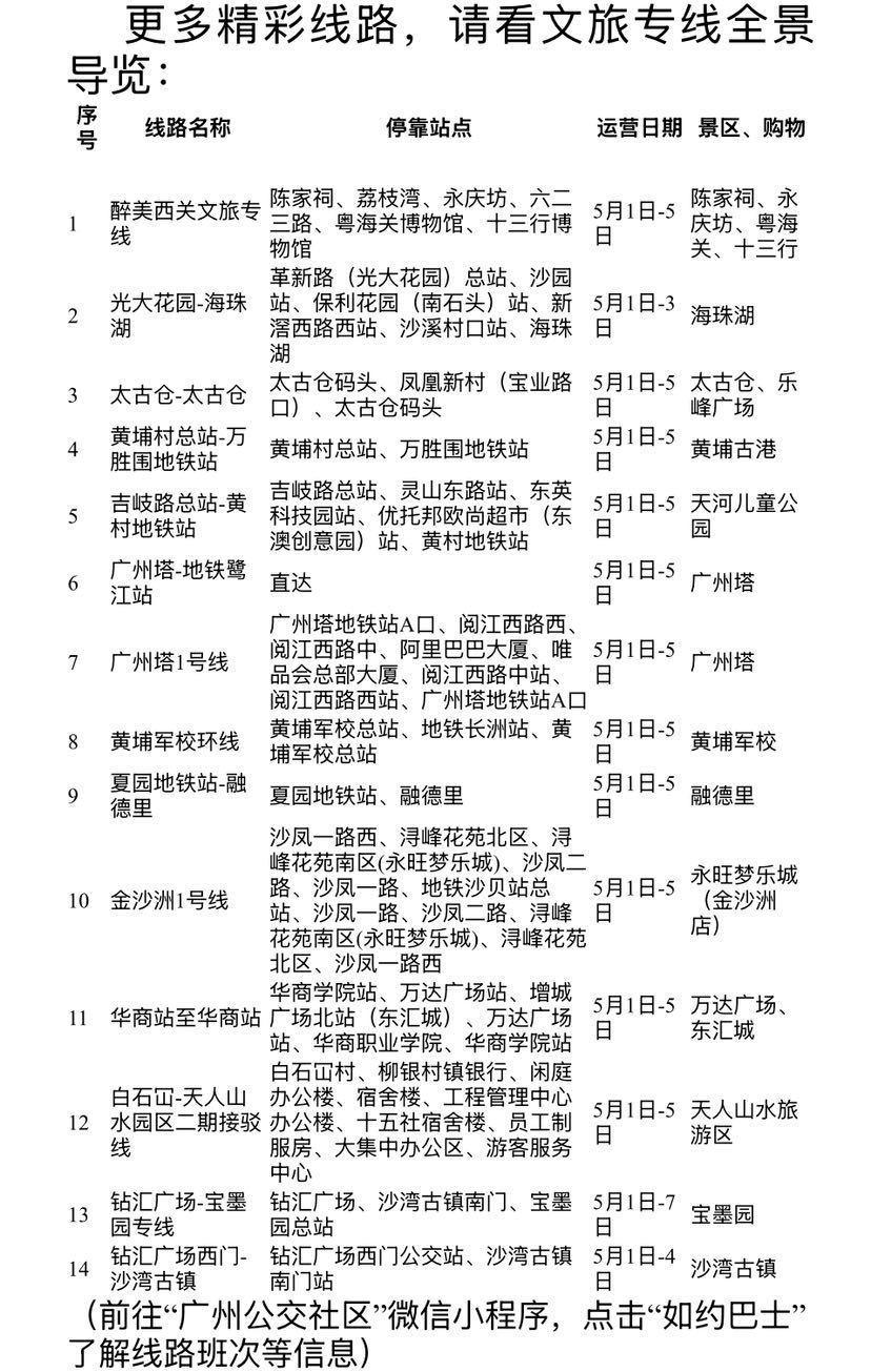 此外,5月1日-5月5日23:30至次日末班高铁到达后20分钟,开行4条广州南站往广州中心城区方向的如约线路。
