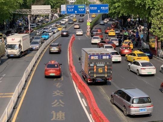 同时,岗顶一带设置了混行车道,扩阔了电动自行车的通行空间,让电动自行车“有路可走”,机动车道的通行速度也同步得到提升。