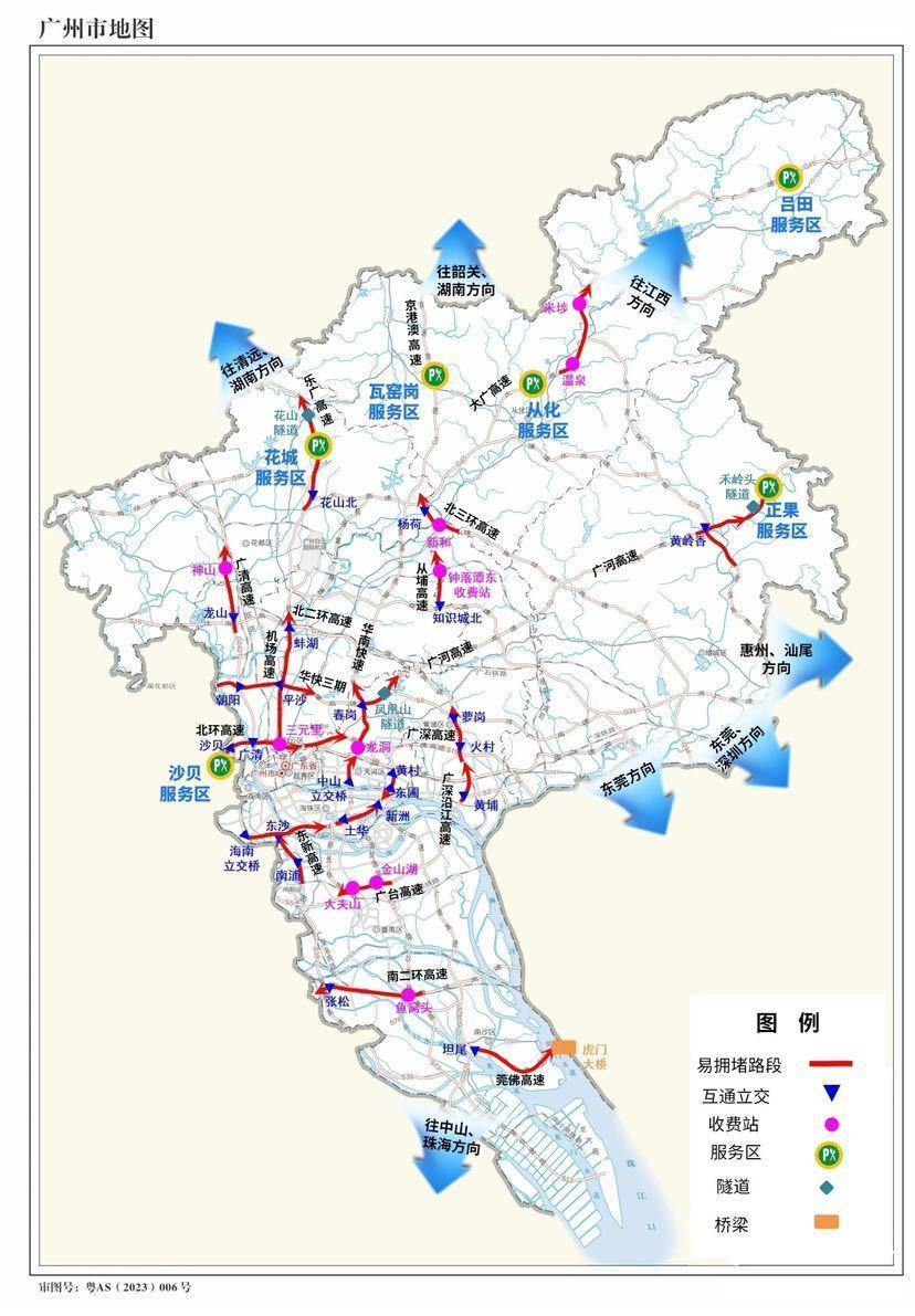 假期期间,中心城区交通总体处于“基本畅通”至“轻度拥堵”状态,商务出行、休闲娱乐出行有所增多。热点区域集中在北京路、天河城等热门商圈,广州塔、永庆坊、白云山、动物园、广州长隆景区、花都融创乐园等热门景点,出行高峰多在10时-12时、14时-18时。
