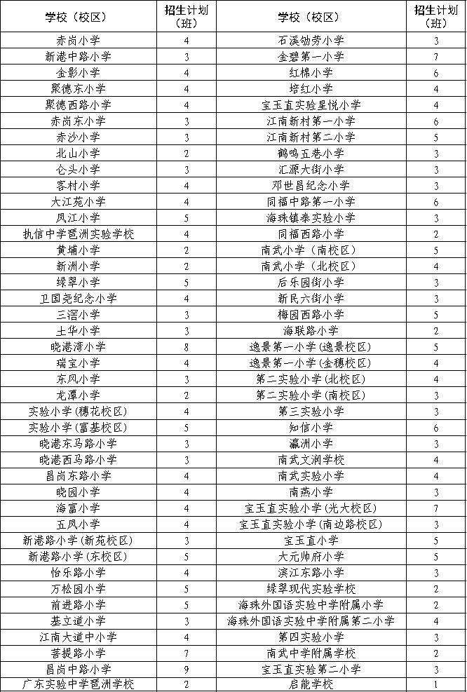 2025年海珠区公办小学招生计划表