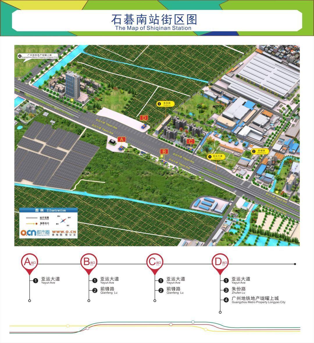 石碁南站位于番禺区石碁镇前锋路交接口以西,沿亚运大道东西走向铺设。其中,石碁南站A、B口分布于亚运大道南侧,D口以及新开通的C口分布于亚运大道北侧、朱份路东西侧。新开通的C口更靠近亚运大道北侧、朱份路东侧客流集中的工业园区和居民小区,该口开通后,工业园片区的市民街坊无需穿行马路即可进站搭乘地铁,日常通勤出行将更加安全和便捷。
