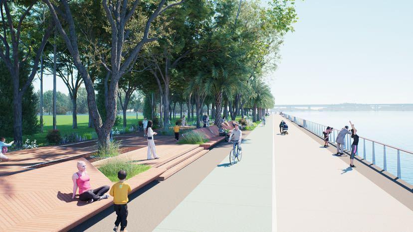 激活,是采用“全龄友好、全时共享”的更新策略,推动蒲洲花园升级,打造生态教育与亲子友好的榕荫乐园。艺展广场段将定位城市艺展舞台,打造南沙艺文生活发生地。特别规划的2处生态厕所与1处骑行驿站、配备母婴护理台、无障碍第三卫生间及紧急呼叫系统,24小时守护全龄段人群的特殊需求,构建“全时生活场”。