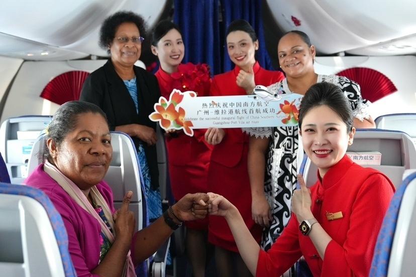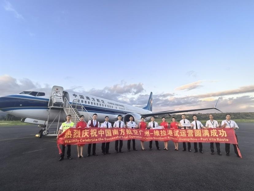 4月29日,中国南方航空首飞广州经莫尔兹比港至瓦努阿图首都维拉港的客运航班,实现了中国内地至南太平洋岛国瓦努阿图的首次试运行,这也标志着中国民航通航国家数量增至79个。该航线的开通将有效促进中国与瓦努阿图两国间经贸、文化与旅游的互联互通,让更多人乐享美好飞行。