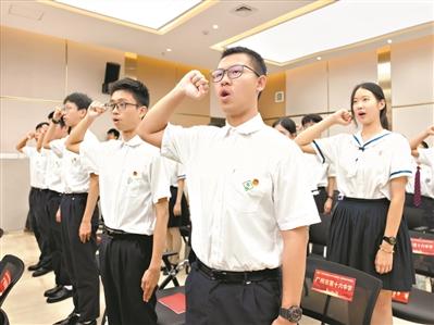 新团员代表高举右拳庄严宣誓。 广州日报全媒体记者骆昌威 摄