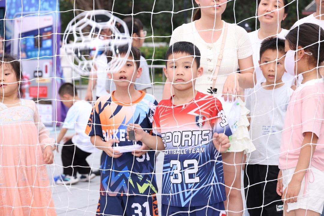 另一边的无人机“低空”足球赛也成为全场焦点。搭载AI技术的无人机开展激烈角逐、灵活穿梭,完成高速穿越、精准射门等高难度动作,其灵活的避障能力和战术配合令现场观众惊叹不已。数字人交互体验区同样人气十足,无论是老人、青年群体还是少年儿童,都能享受到AI体验与服务。