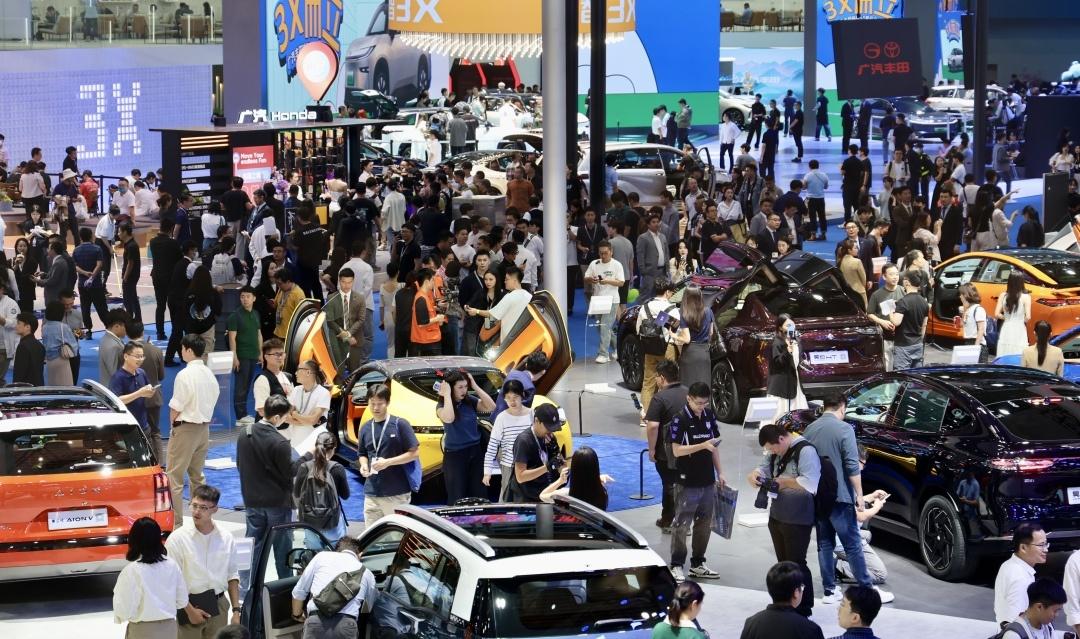“五一”假期,广州汽车市场迎来消费热潮。在琶洲的一个汽车展会上,现场人头攒动,多款刚上市的新车首次亮相羊城,从豪华轿车到硬派越野,从新能源纯电车型到高性能跑车……不同类型、不同风格的智能新车汇聚一堂,展示着最新汽车“黑科技”,吸引逾万人次前来观展和选购新车。