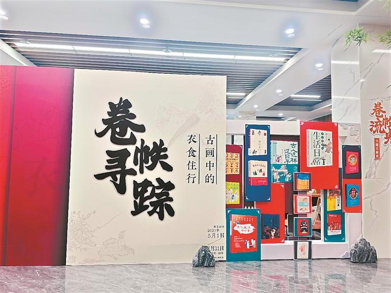 省立中山图书馆主题馆“卷帙寻踪·古画中的衣食住行”展览现场。广州日报全媒体记者孙珺摄